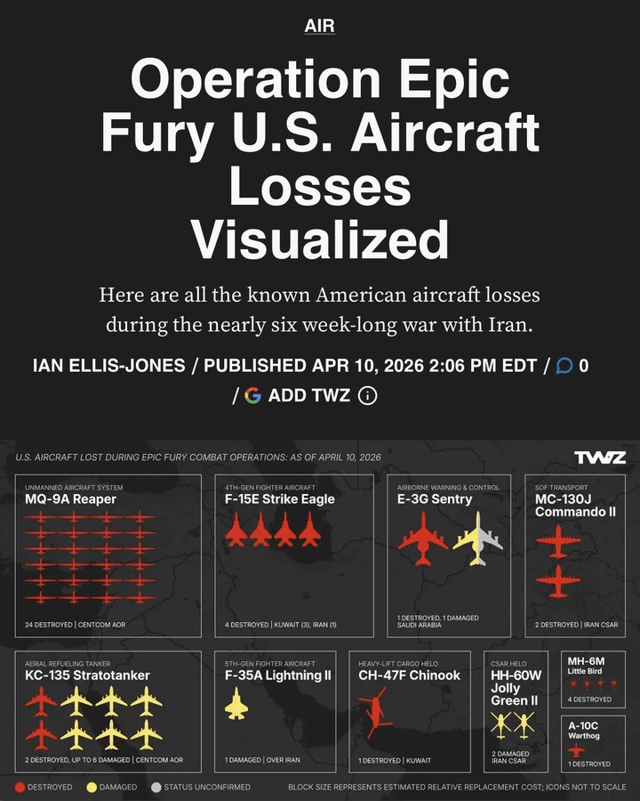 Opération Epic Fury : visualisation des pertes aériennes américaines