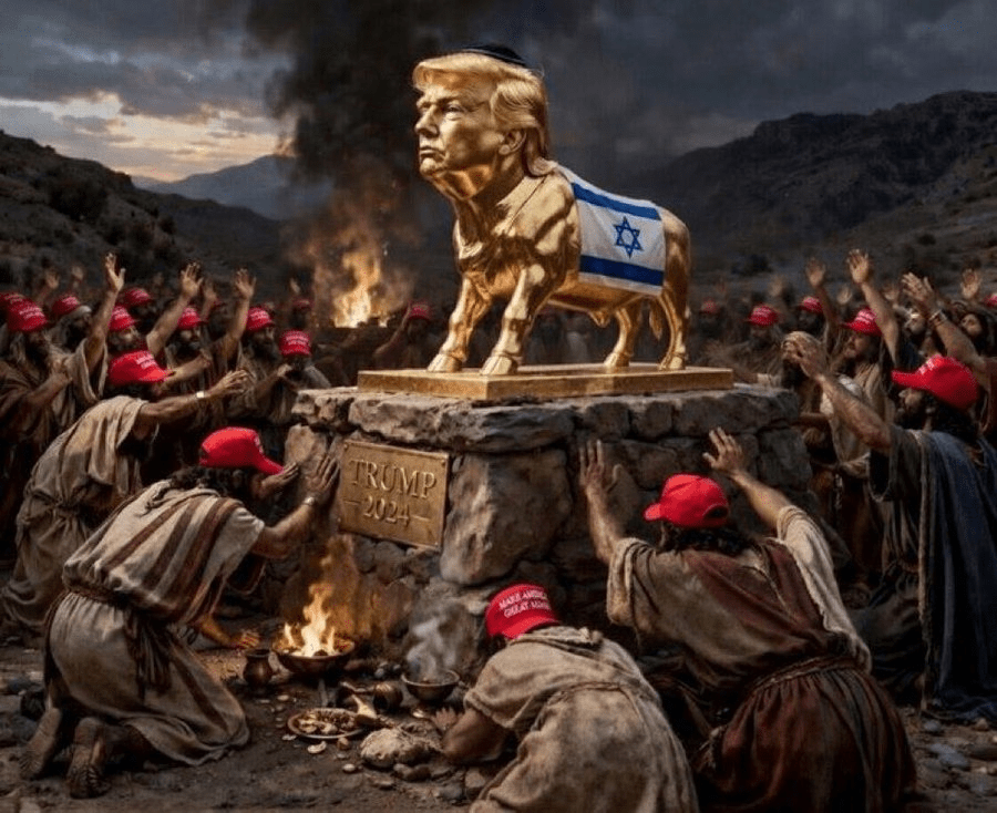 la conseillère spirituelle de Trump dans ses oeuvres- c’est la personne en jaune.