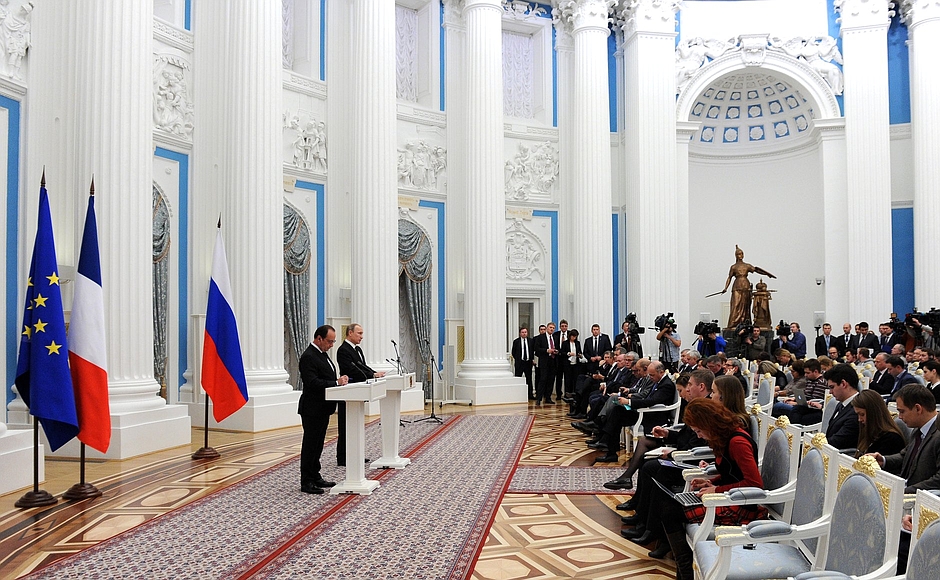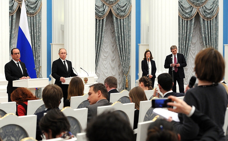 Question (journaliste français) : Bonsoir. Ma question s’adresse aux deux Présidents. Monsieur Poutine, pourquoi avez-vous déployé les systèmes de roquettes multiples S-400 ? Monsieur Hollande, ce déploiement des S-400 est-il compatible avec les efforts de la coalition internationale ?