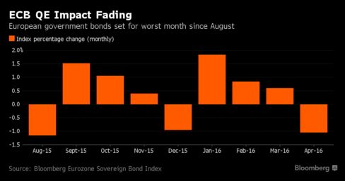 Even as the ECB increased its asset-purchase program to 80 billion euros ($92 billion) in April, from 60 billion euros, sovereign securities headed for their biggest monthly decline since August, according to Bloomberg World Bond Indexes.