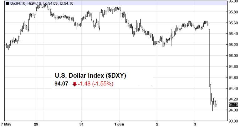 [Bloomberg] Dollar Tumbles Most Since December as Jobs Data Dim Fed Outlook