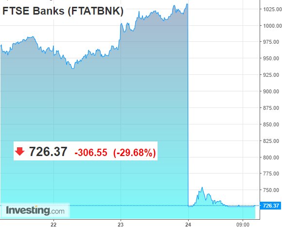 La Bourse italienne a chuté de 7,1% ce qui porte sa baisse de 2016 à tenez vous bien: -26,6%