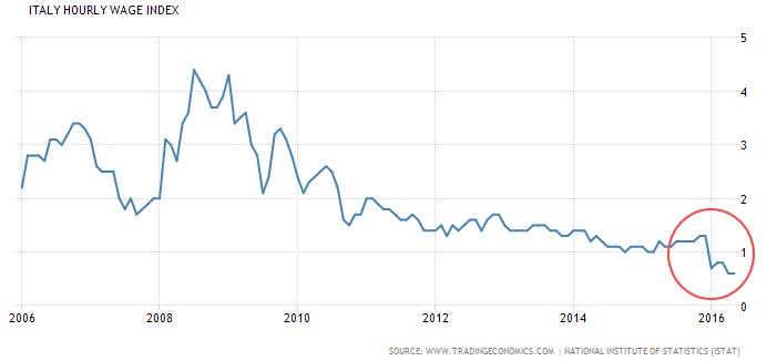 Bientot ce sera au tour de l’Italie de se rebeller , regardez le graphique ci dessous ! La pente des gains horaires salariaux doit être inversement corrélée au soutien au gouvernement et aux eurocrates