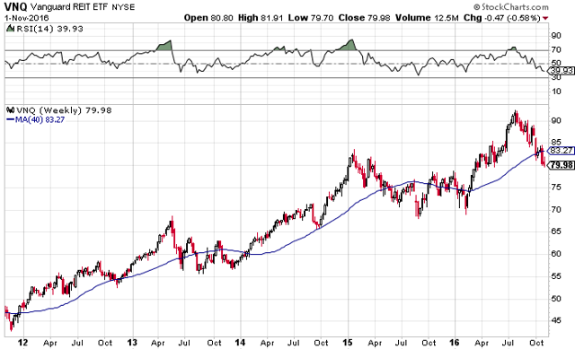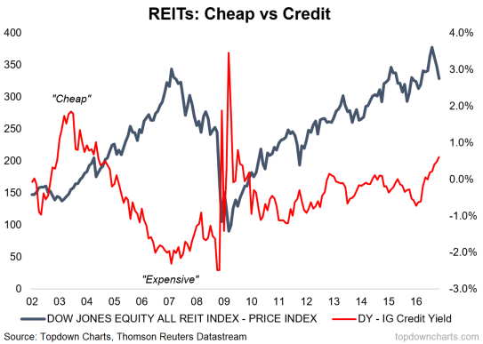 -Les Reits américains ont beaucoup monté depuis 2009 et elles étaient incontestablement surévaluées, donc vulnérables soit à un changement de politique monétaire (courbe plus pentue) soit à une bouffée d’inflation