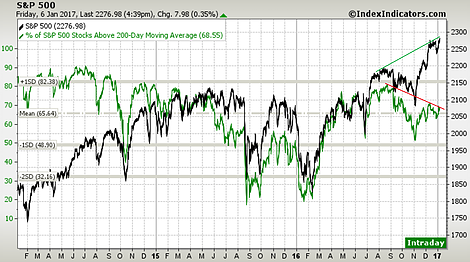 Le sentiment global reste positif sur les marchés, mais il est plus mitigé. Les commentateurs sont moins unilatéraux, ils restent haussiers bien sûr, mais ils fixent des limites, des dates butoirs et réintroduisent le facteur “risque”..Entre les différents marchés, des divergences commencent à apparaître, cela va dans le sens d’une pause.