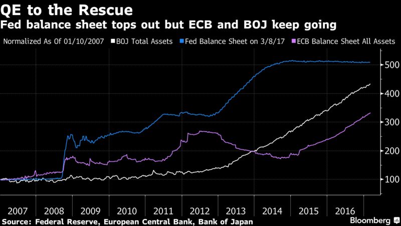 Ce n’est pas fini car les banques centrales continuent d’augmenter la taille de leurs bilans au rythme de 200 milliards de dollars par mois.