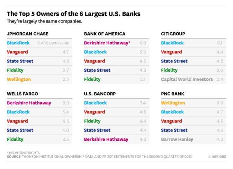 Regardez le tableau ci dessous, il vous donne une vision radicalement fausse de qui contrôle les 6 plus grandes banques US! Radicalement fausse!