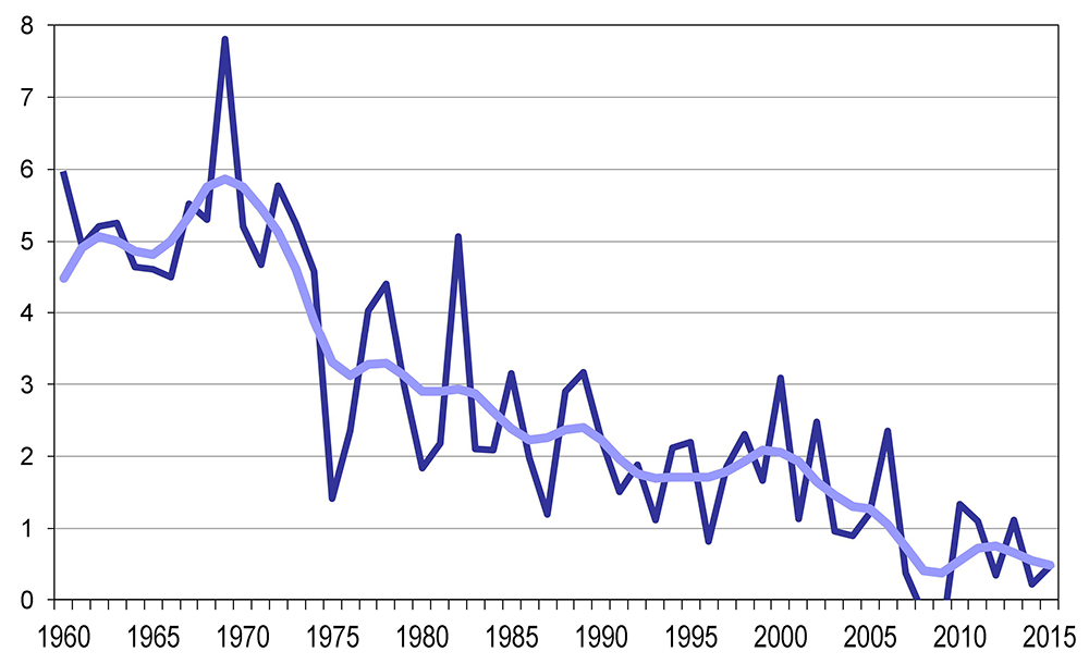 France 1960-2015. Taux de croissance annuels: une évolution intenable, suicidaire !
