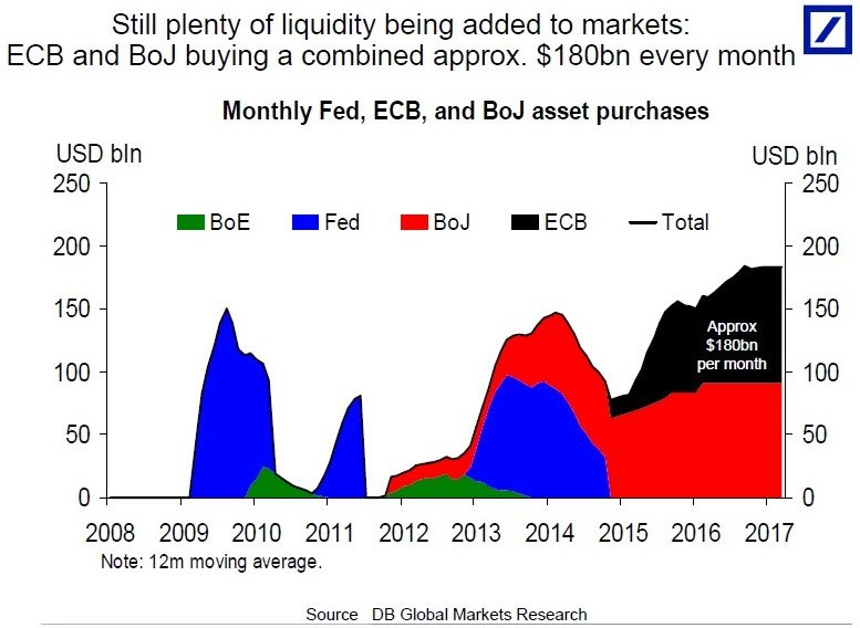 Le mythe a la vie dure. A force de parler de réduction de taille de bilan des banques centrales, de hausse des taux , on finit par croire que cela se fait ! Bien sur que non , on cause, on cause on crée une ambiance . Voir notre article récent sur ce sujet. On veut vous faire croire que l’opération réussit… alors qu’elle n’a pas commencé.