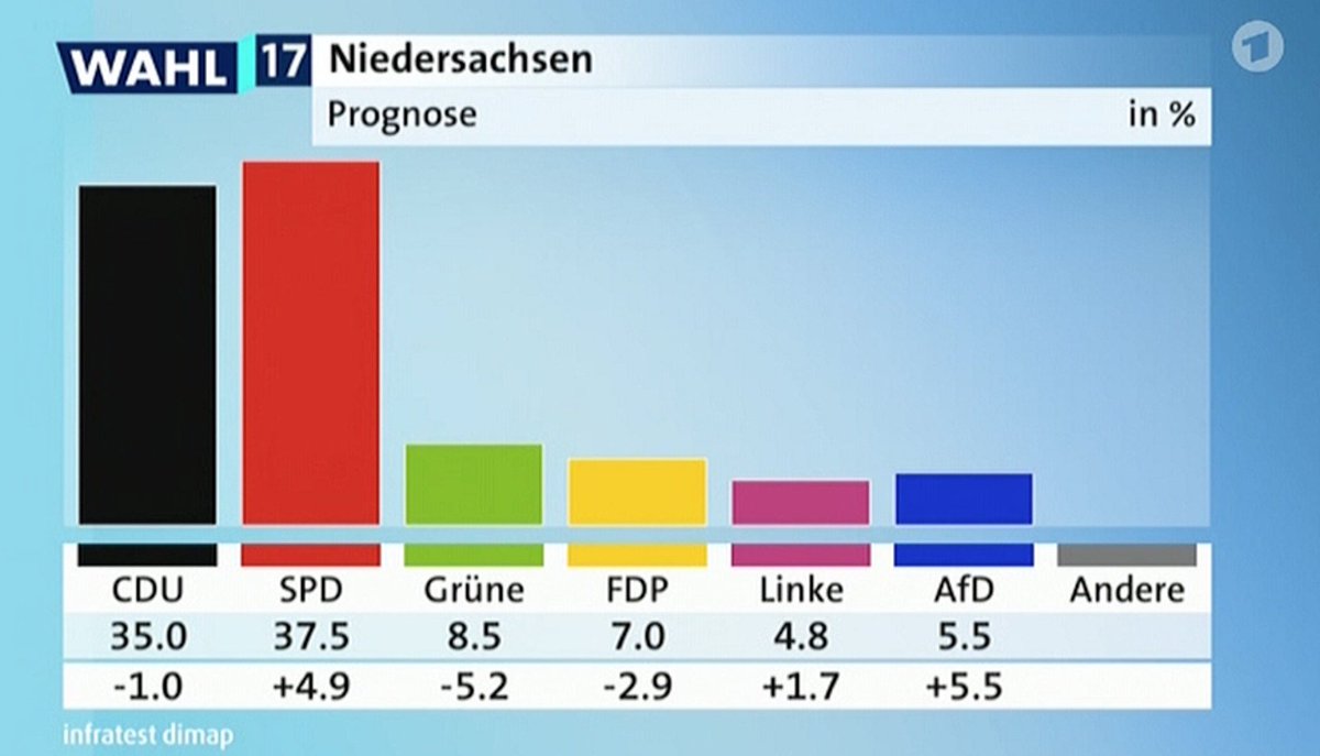15 octobre 2017 Election en Basse Saxe, claque pour la coalition dite Jamaique Election zn Basse Saxe, claque pour la coalition Jamaique : CDU, FDP & Verts perdent en combiné 9.1ppts! Partager : Partager sur X(ouvre dans une nouvelle fenêtre) X Partager sur Facebook(ouvre dans une nouvelle fenêtre) Facebook J’aime chargement… Similaire