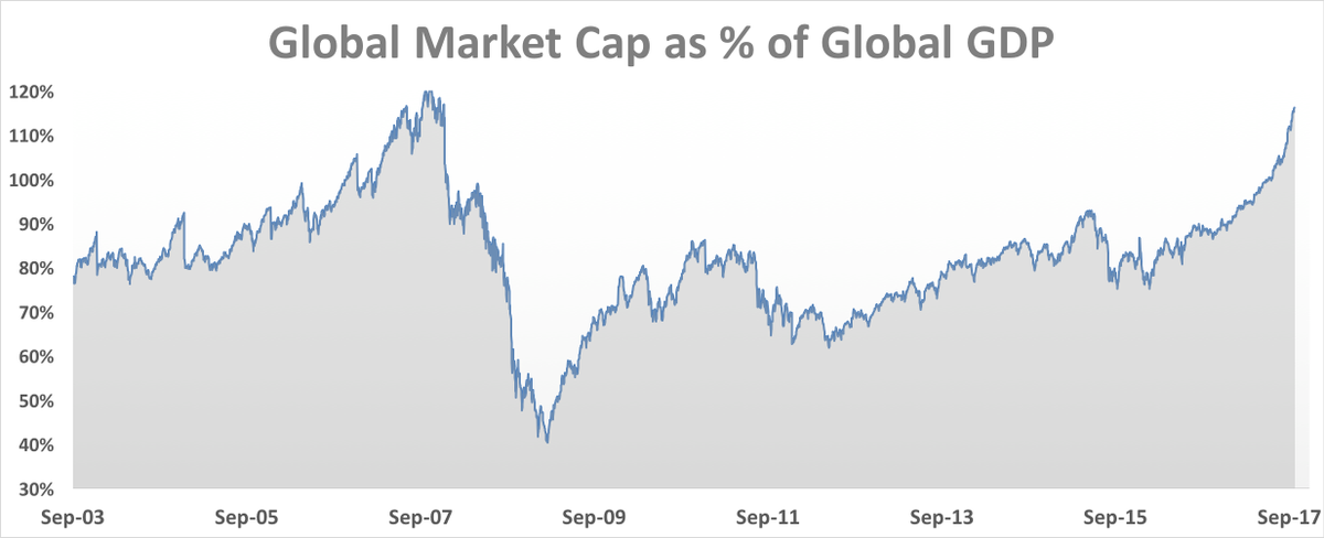 Le marché global des actions a gagné 800 millions de plus cette semaine , il atteint les 88 trillions de $ soit 115% du GD mondial !