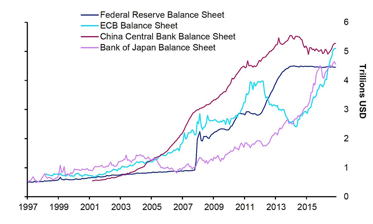 L’argent est toujours là si on en croit les bilans des banques centrales. Ils restent coincés dans leurs niveaux records malgré tout le vacarme sur la normalisation qui fait croire que quelque chose a changé! La normalisation, c’est une ambiance, un air du temps. les autorités croient qu’à force d’en parler cela se passera sans douleur.