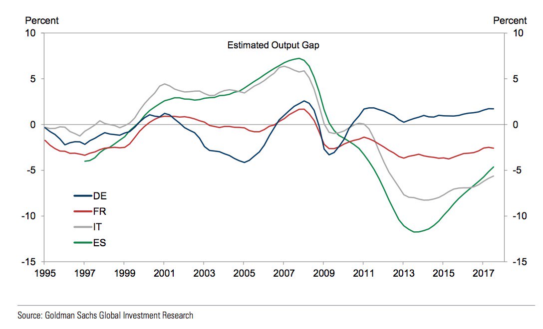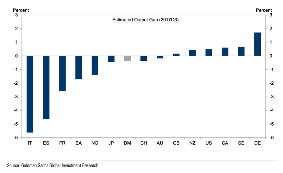 L’Allemagne selon Goldman Sachs est en surchauffe, il n’y a plus de capacité de production oisive disponible , on dépasse de 1,7%