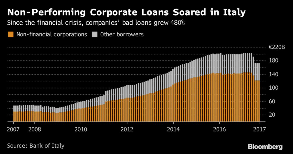 Hausse de 480% des prêts pourris en Italie depuis la crise! Vous avez dit amélioration?