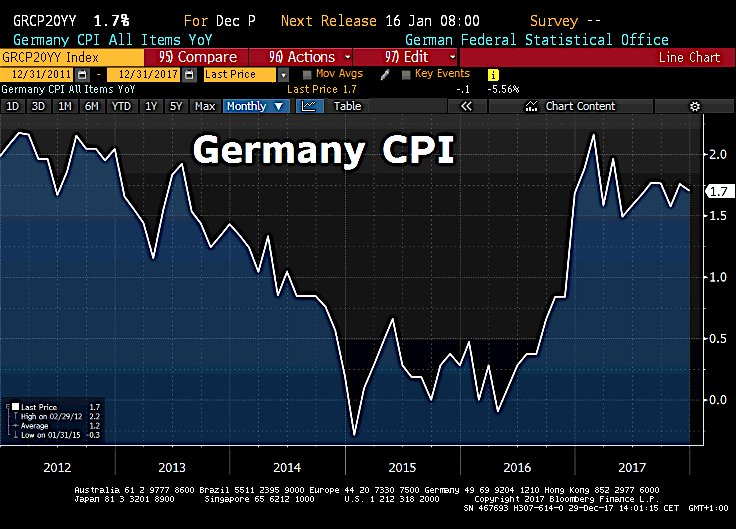 Pour l’ensemble de 2017, l’inflation allemande harmonisée a accéléré à 1,7%, sa plus forte hausse depuis 2012 lorsque l’inflation avait atteint 2,1%, contre 0,4% en 2016.