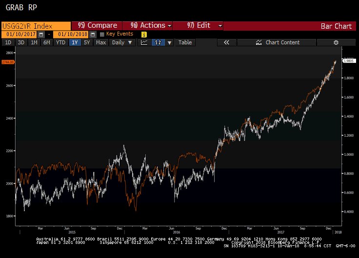 l’incroyable corrélation enrte le taux du 2 ans US et le S&P 500: cherchez le lien ?
