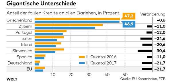Un article de Die Welt qui revient sur la situation des banques européennes lesquelles ont des prÊts non performants pour près de 1 trillions, soit 950 milliards. La situation de l’Italie est encorre très mauvaise. Die Welt pose la question : qui va payer?