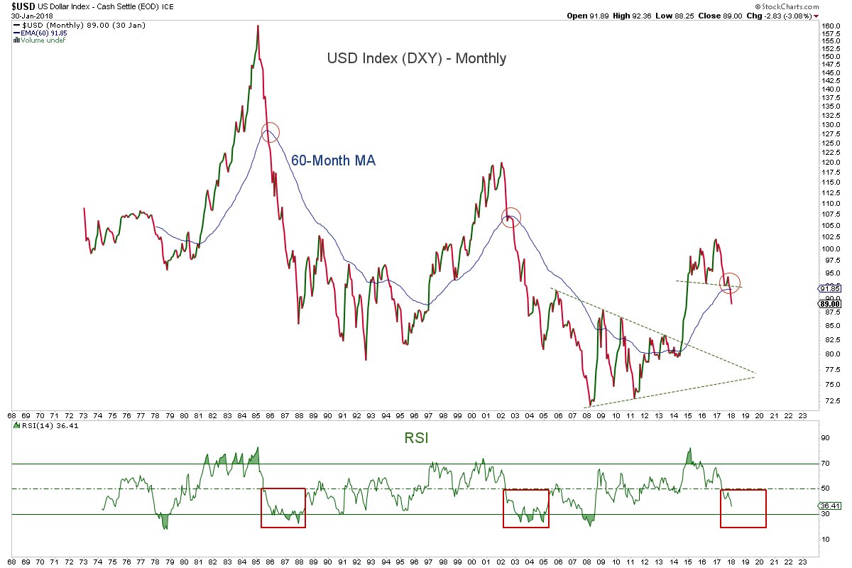 Quand on observe le graphique très long qui retrace l’évolution du dollar index, le DXY, on se prend à penser qu’il a une bonne marge de baisse! La gravitation serait on tenté de dire, cela existe.