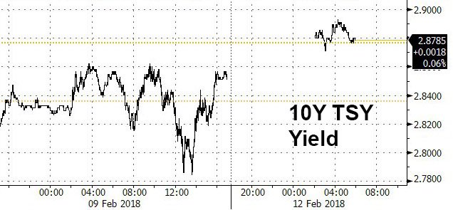 The yield on the 10-year Treasury traded as high as 2.893 percent this morning as investors stay alert on inflation risks ahead of key U.S. CPI data on Wednesday. Budget Director Mick Mulvaney warned that there could be a spike in yields as the U.S. posts a larger deficit this year, while adding that the budget imbalance would fall over the long haul as part of President Donald Trump’s spending plans. With investors amassing record short U.S. Treasury positions, and more Fed hikes this year a done deal, a fully-fledged bond bear market may have legs.