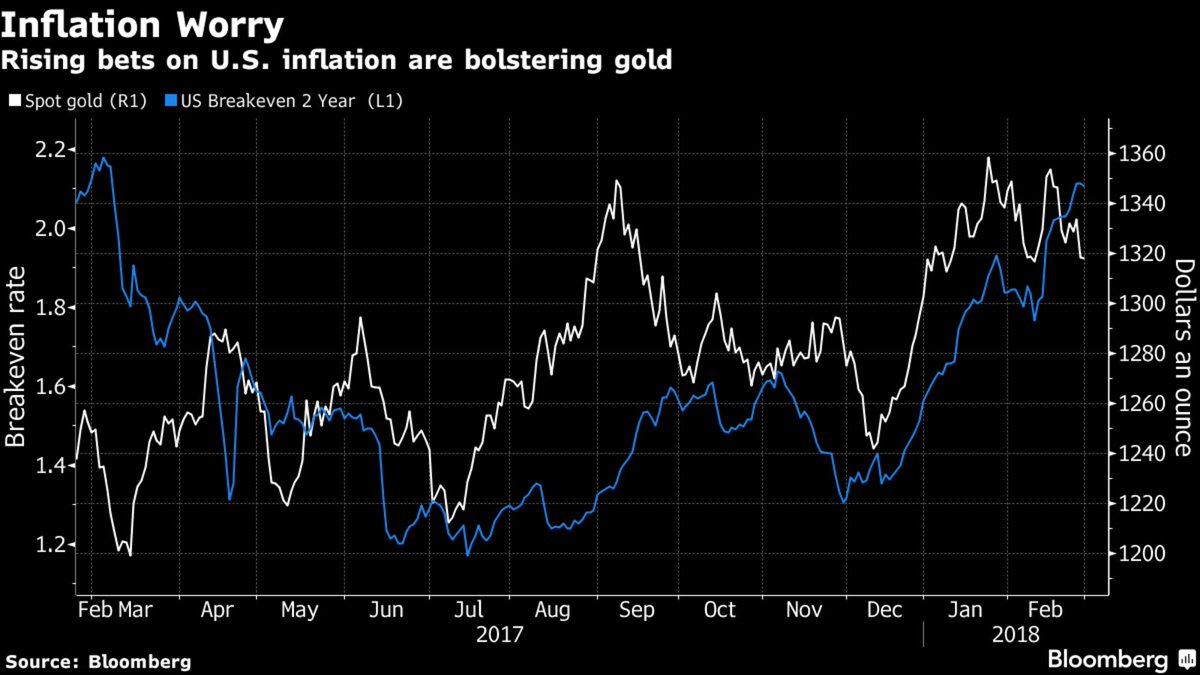 Le lien entre le cours de l’or en dollars et les anticipations d’inflation -les breakeven- existe mais il n’est pas évident à suivre dans le court terme.