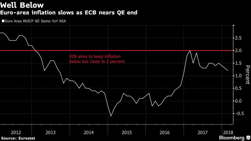 Ralentissement de l’inflation des prix en Europe ; voila qui donne à la BCE de la souplesse pour mener sa politique de normalisation et surtout en retarder le débat; . l’inflation est au plus bas depuis 2016!