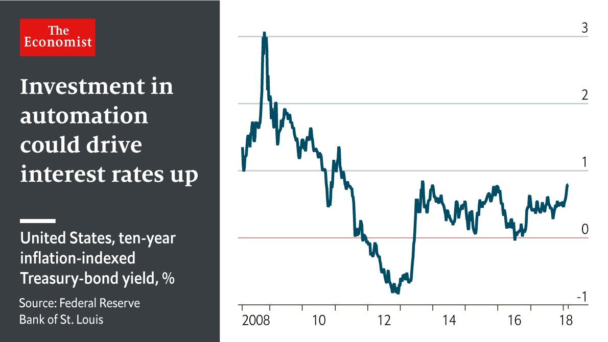 Central banks are now starting to push rates slightly higher. And according to a new paper* from Bain, a management consultancy, the trend towards robotics will push them higher still—at least for a decade. That could be a shock for the financial markets.