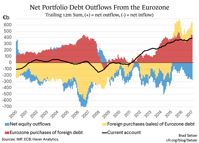 Le surplus européen, le mercantilisme allemand et l’ordo-libéralisme imposé aux pays du Sud, dans leur oeuvres de déstabilisation du système global : un surplus de 400 milliards sur les 12 derniers mois!