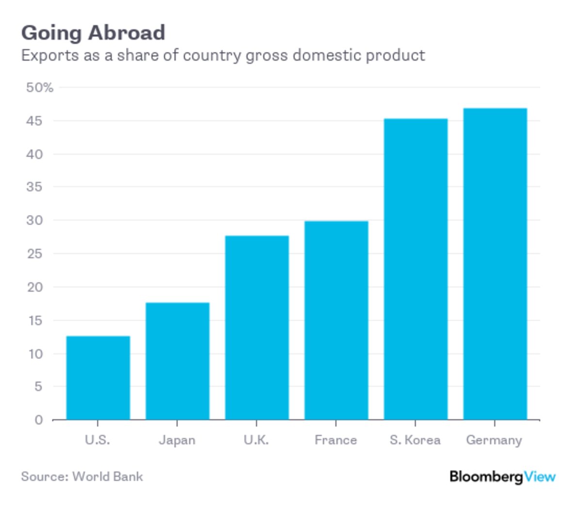 A propos de la Trade War bidon/gesticulation ,voici les parts des exportations dans les GDP de quelques pays: