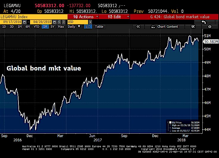 21 avril 2018 Le marché obligataire global plafonne Il y a longtemps que nous n’avons pas publié ce graphique de la masse que représente le marché obligataire global Partager : Partager sur X(ouvre dans une nouvelle fenêtre) X Partager sur Facebook(ouvre dans une nouvelle fenêtre) Facebook J’aime chargement… Similaire
