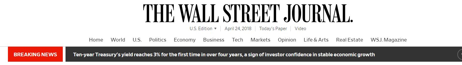 « le taux de rendement des treasuries à 10 ans atteint 3% pour la première fois depuis 4 ans, c’est un signe de la confiance des investisseur dans une croissance économique stable »!