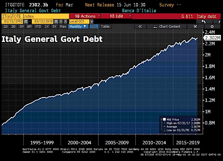 - The Italian political drama continues . A leaked document suggested they were working towards a larger fiscal deficit and the ECB cancelling the Italian bonds it bought under quantitative policy. The latter is easy, as the ECB bought no Italian bonds (the Bank of Italy did).