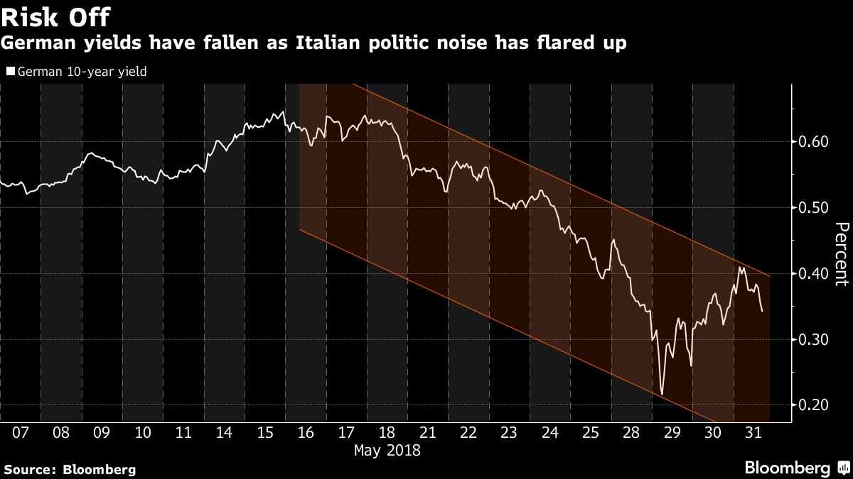 Le risque de d’éclatement de l’euro est considéré comme minuscule, mais cela n’empeche pas un ou plusieurs gros investisseurs d’accumuler les Bunds allemands à titre de protection. Regardez la récente baisse des taux du Bund malgré la détente du stress italien.