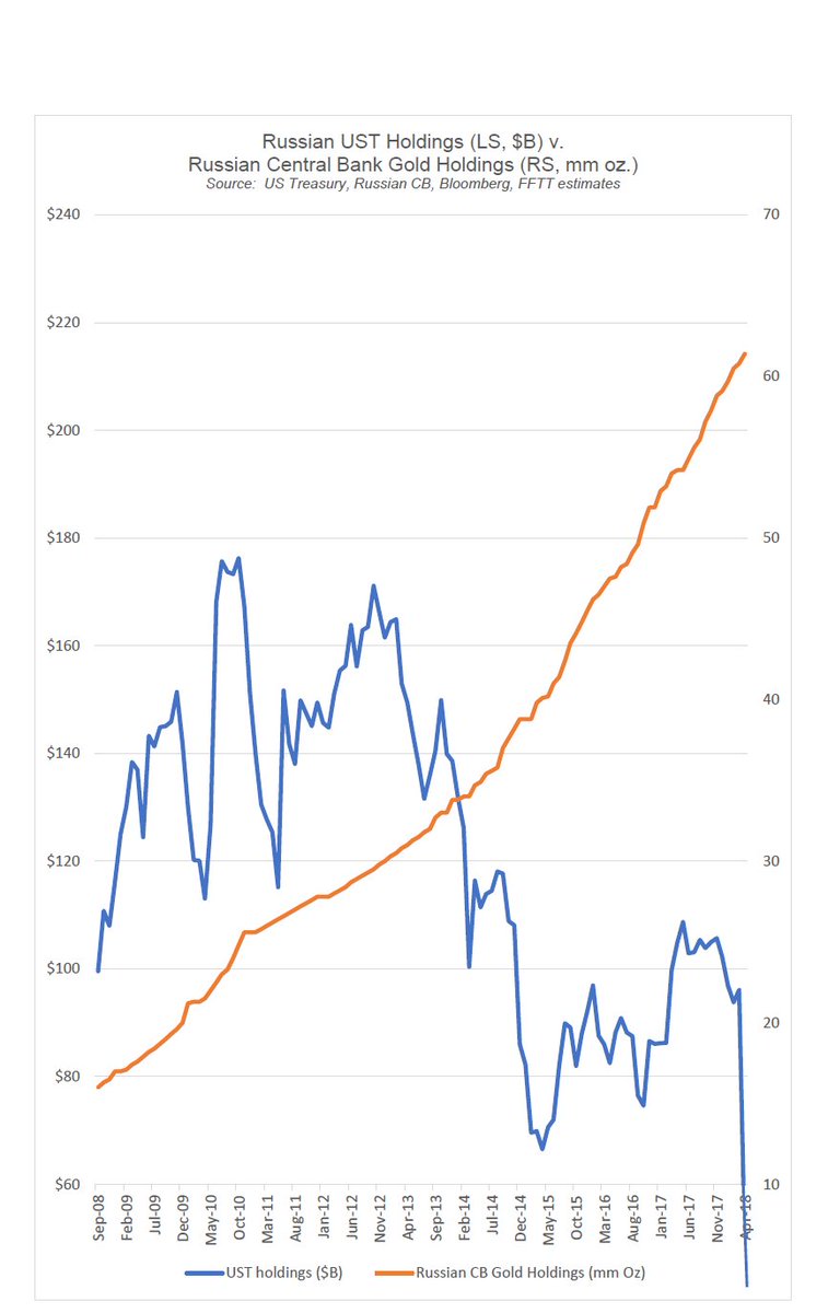 Russian official gold hldgs are now 160% of Russian UST hldgs;