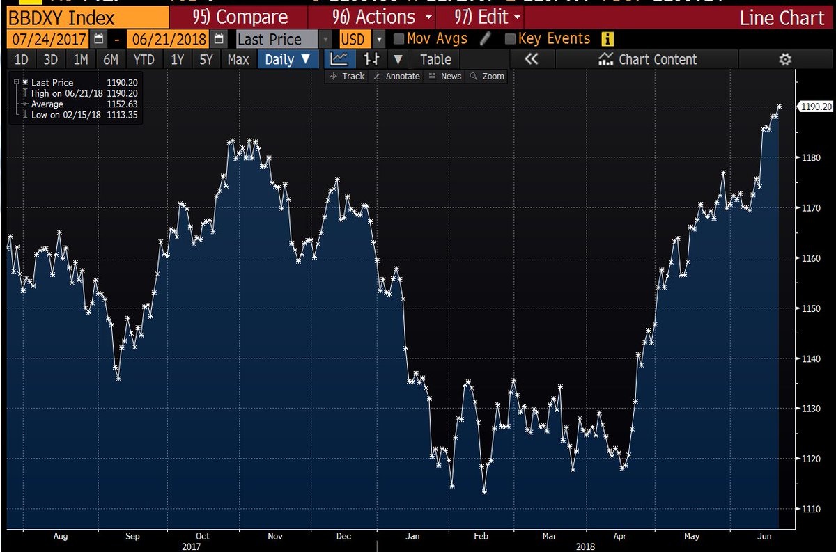 On remarque la fin de la baisse qui intervient en janvier, une période de construction d’une base, puis le décolage.