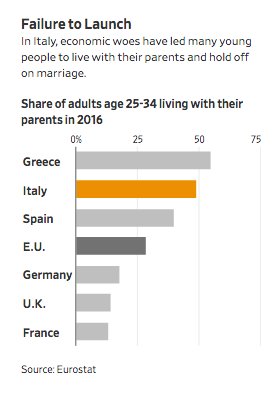 Près de 50% des Italiens de moins de 34 ans vivent chez leurs parents.