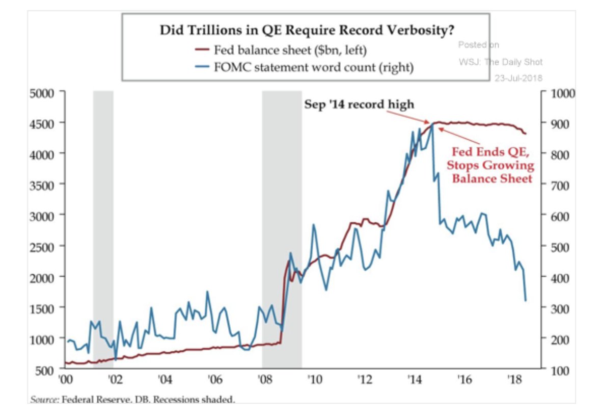 L’inflation du verbiage, c’est à dire de la guidance verbale a connu son maximum au moment du maximum de la taille du bilan!