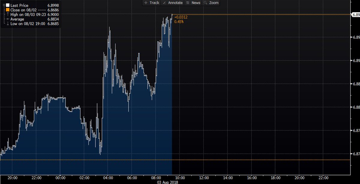 L’offshore Yuan au dessus de 6,90.