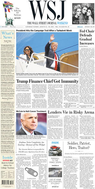 La ‘Une » du Wall street Journal après Jackson Hole: Le chairman de la Fed défend le gradualisme … un peu creux , un peu vide non; on se reportera à notre éditorial sur ce sujet. Une analyse critique.