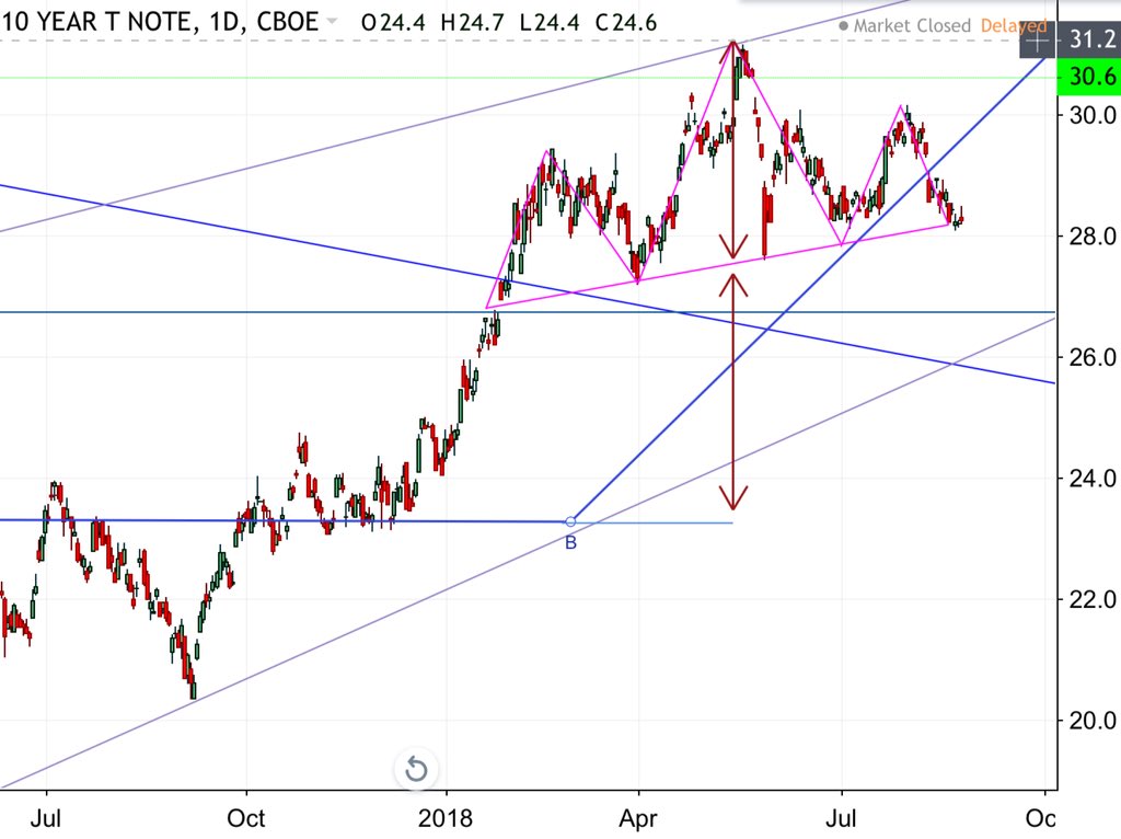 Le rendement du 10 ans US, une configuration baissière en « tête et épaules »? Presque, pas encore! Je ne prends pas les paris!