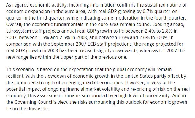 Pour preuve voici ce que disait Tricher le 19 decembre 2007: « les fondamentales économiques demeurent solides ».