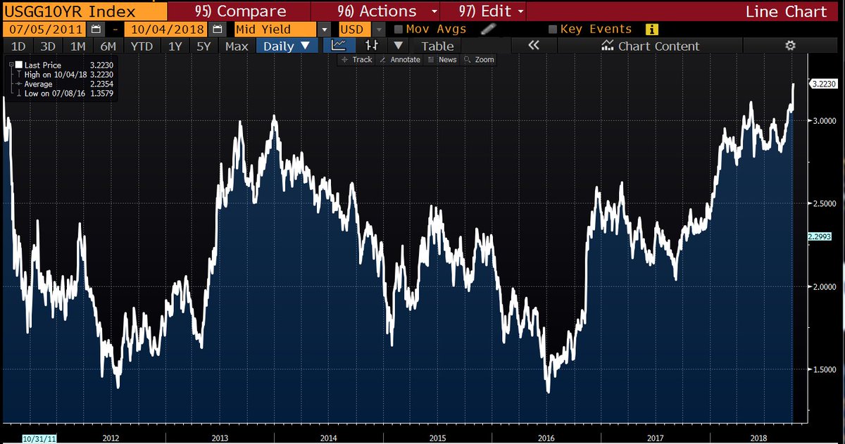 La grande affaire c’est la hausse des taux ! On s’étonnait qu’ils ne montent pas malgré l’ébauche de normalisation monétaire et maintenant on s’étonne qu’ils montent! Allez comprendre. Ce qui est sûr c’est que les marchés ont réagi aux propos de Powell lorsqu’il a déclaré que peut-ëtre il faudrait monter les taux de la Fed au dessus du taux neutre.