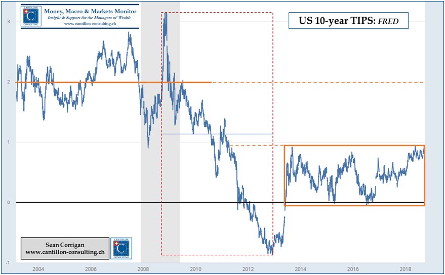 Les taux réels implicites dans les TIPS( les emprunts qui sont censés protéger de l’inflation) sont encore 1% en dessous de ce qu’ils devraient être.