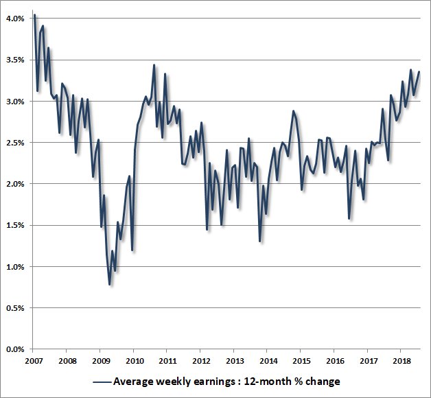 Donc plus faible que prévu, 134 000 contre 185 000 mais attention facteur climatique exceptionnel. Hurricane Florence. Chomage en recul à 3,7% . Le sous emploi U6 en tres légère hausse à 7,5%. Croissance des salaires très léger ralentissement à 2,8% l’an.