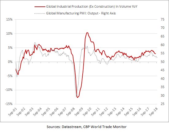 J.P.Morgan Global Manufacturing Output PMI au plus bas de 24 mois en septembre, ceci suggère que la production industrielle globale , hors construction, a ralenti au 3e trimestre