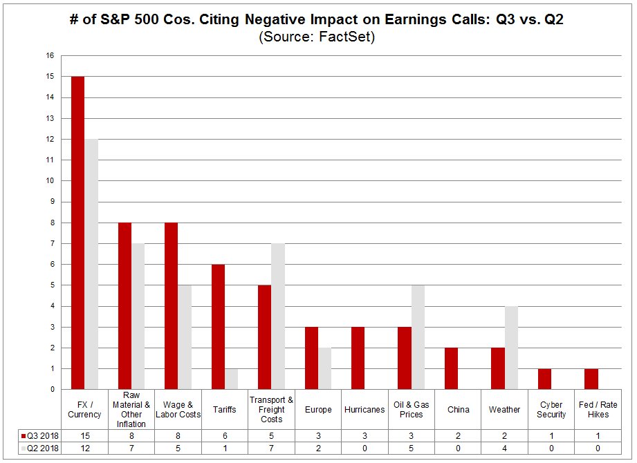 Les société américaines ne considerent pas que les « tariffs » vont peser sur leurs résultats mais en revanche elles citent le cours du dollar en premier parmi les facteurs négatifs.