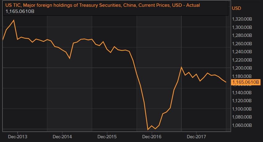 Les réserves chinoises en Treasuries US sont en baisse pour le troisème mois consécutif., moins 6 millards.