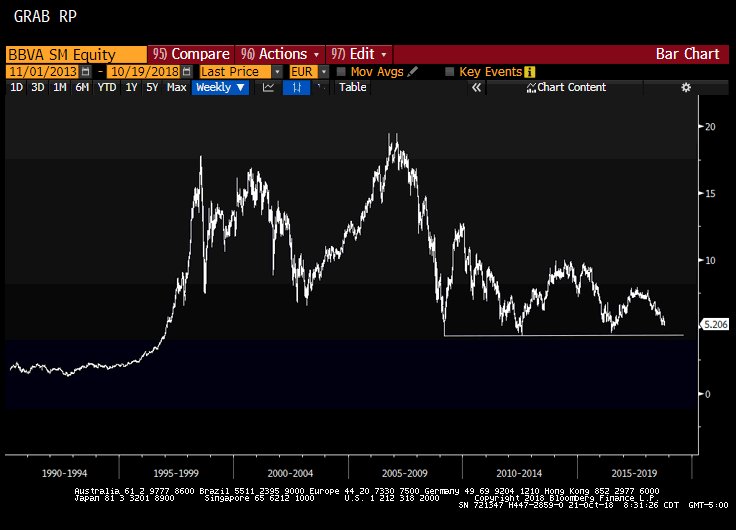 Pour ceux qui n’ont pas encore vu que la situation de l’Espagne se détériore à nouveau, voici l’évolution du cours de Bourse de la grande banque BBVA