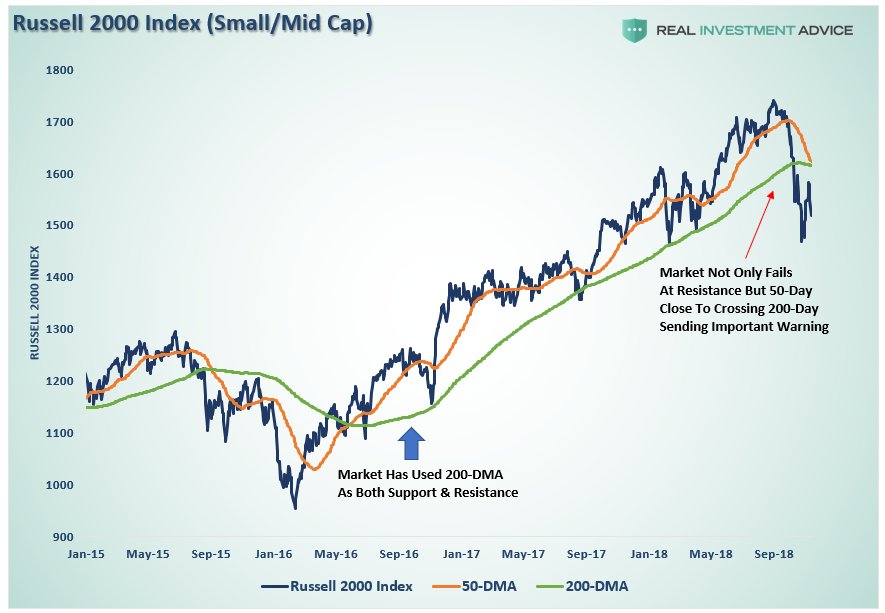 Il y a longtemps que nous n’avons pas jeté un coup d’oeil sur les mid cap: elles sont à la peine et peut etre agissent comme indicateurs avancés avec le croisement de la MM 50 et de la MM 200 pointant vers le bas.