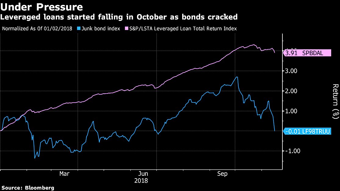 Les leveraged loans en mauve, ont cassé en Octobre: