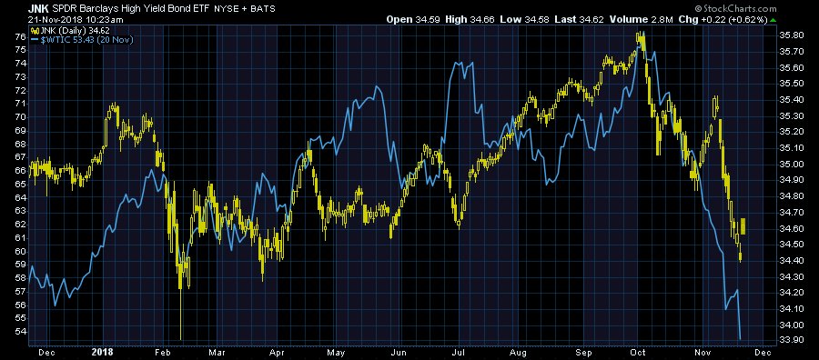 La chute des prix du pétrole fait chuter la valeur des obligations a haut rendement et monter les taux. Elle desolvabilise.